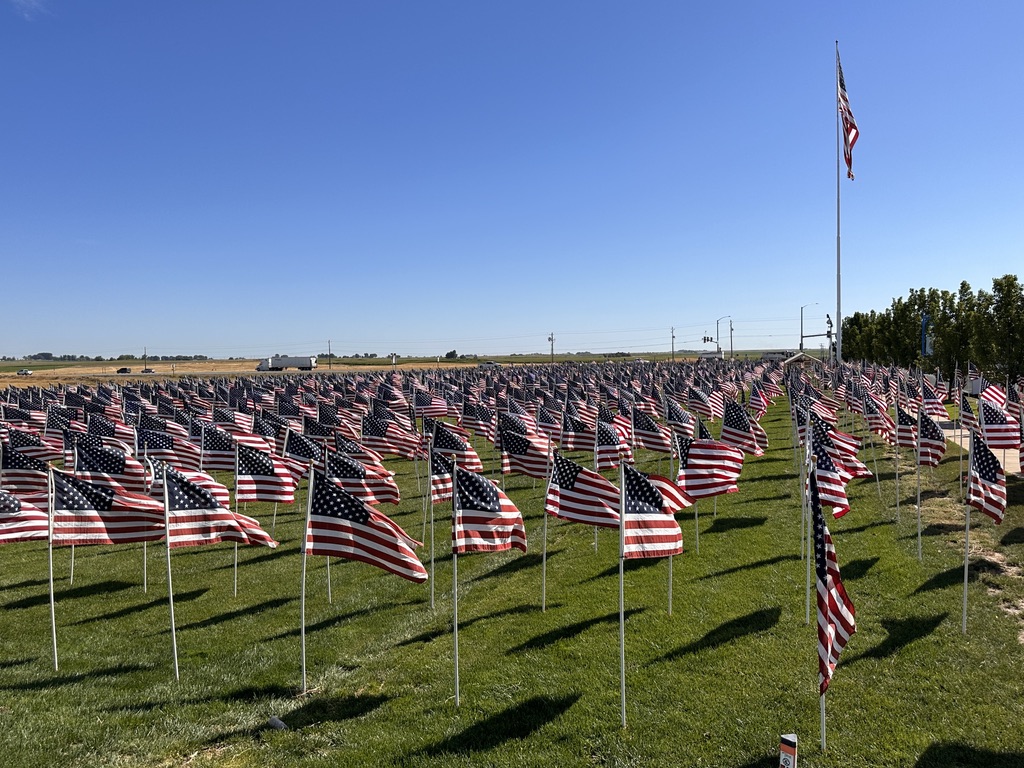 Before crossing the canyon, we stopped to investigate a field filled with 3,000 American flags on display next to Highway 93. It’s called the field of healing, honoring those who died in 9-11, and other tragedies our nation has suffered. I spoke with a VFW member who was currently on guard and learned that the field is filled with flags every year at this time. VFW and American Legion members mark out the flag locations and the High School football team places all 3,000 flags. He said it only takes them about an hour to complete it. That would be worth watching.