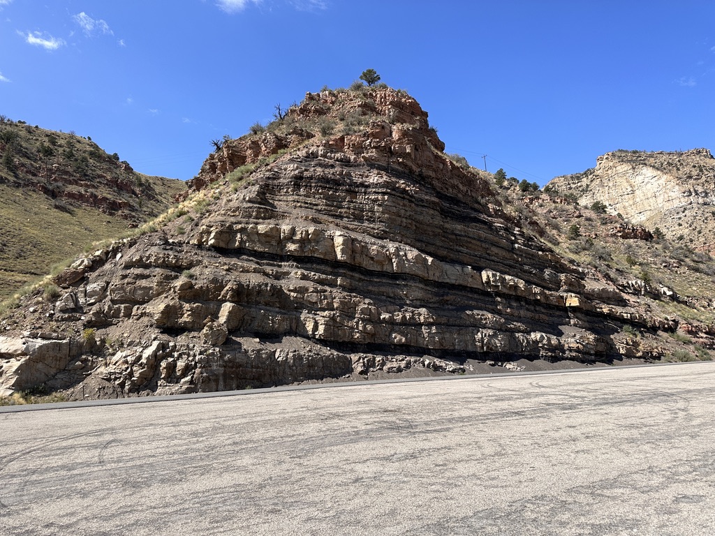 This morning we had planned to leave at 9 am but didn’t leave until 10 am. Or later. First stop was a Love’s refueling depot for fuel. As you might expect, I got confused about how to get into the pumps and didn’t make it until Terry and Cliff were finished. As we were finishing up, Terry showed up behind us at the pump and followed us out. Thinking he and Cliff were coming along behind us, we headed for I-215 south to the exit toward Green River, Utah (our next destination) we learned that Terry had pealed off to wait for Cliff and Susie who were at the nearby Cracker Barrel for some reason. We were already committed to entering I-215 so chose to continue on and let everyone know we would wait for them at a likely turnout, or rest area on up the road.