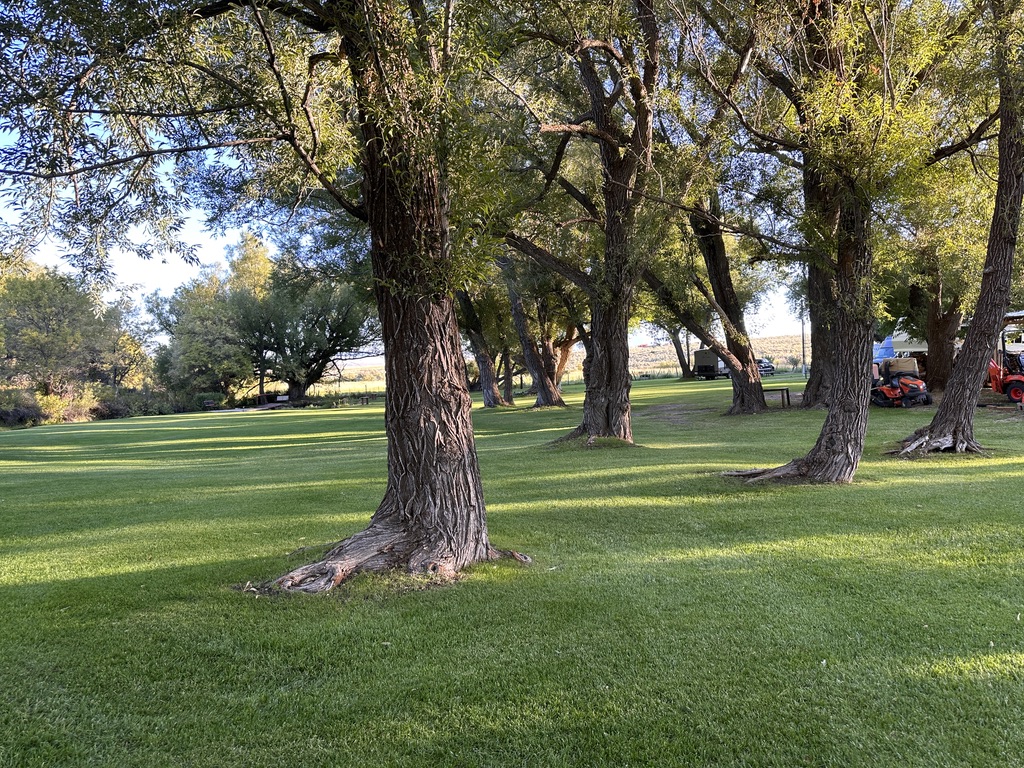 When we arrived Cliff and Terry, who didn’t miss the entrance, were hooked up and we were prepared to spend the night dry camping. But, Cliff had a better idea. The spaces were long enough that we could park two RV’s in one spot so we got permission to double up. The lodge manager agreed and that’s what we did.