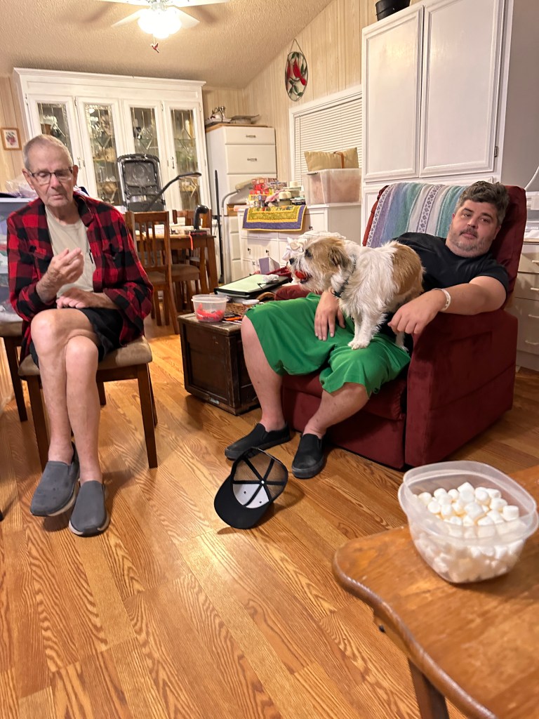 After waking around 0700 I walked Max then grabbed a cup of coffee for Diane and headed back to the room. We got ourselves ready for the trip then stopped by the breakfast nook for sustenance before heading to Happy Trails. Jack met us at the gate and got us a pass so we could come and go at will which Diane did. Before she left we had lunch at the activity center; Diane had a patty melt, Jack had a quesadilla, and I had a few dead shrimp. It was all good. Then Diane went off to a nearby Dollar Store for some essentials and I stayed at the house working on a jigsaw puzzle with Jack. I think I found only about 3 pieces, but it was productive. We talked a lot.