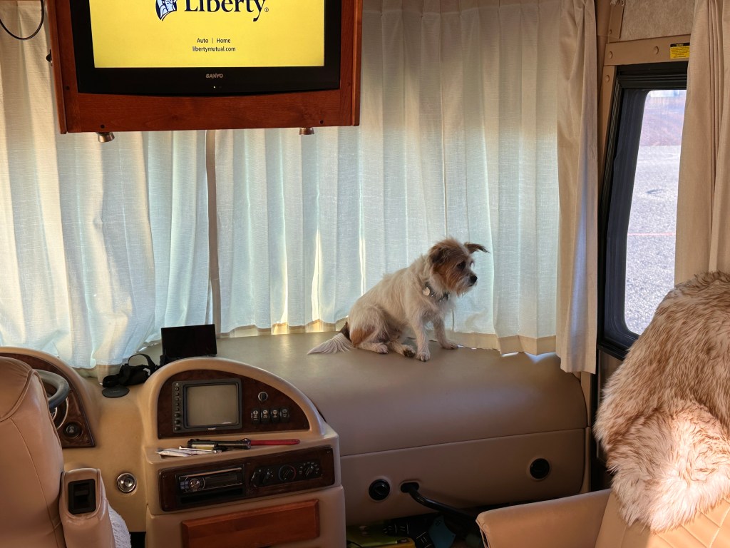 In addition to excellent TV access, there’s a wonderful dog park here at Armitage, and Max spent a memorable 30 minutes racing and mowing down a number of regular attendees at the park. They will remember him. He really did mow them down. Ran right over them no matter how big. Once he started doing his zoomies, they all joined him but they couldn’t keep up. Sadly, I have no video evidence of his prowess so you’ll just have to take my word for it. He had a lot of fun.