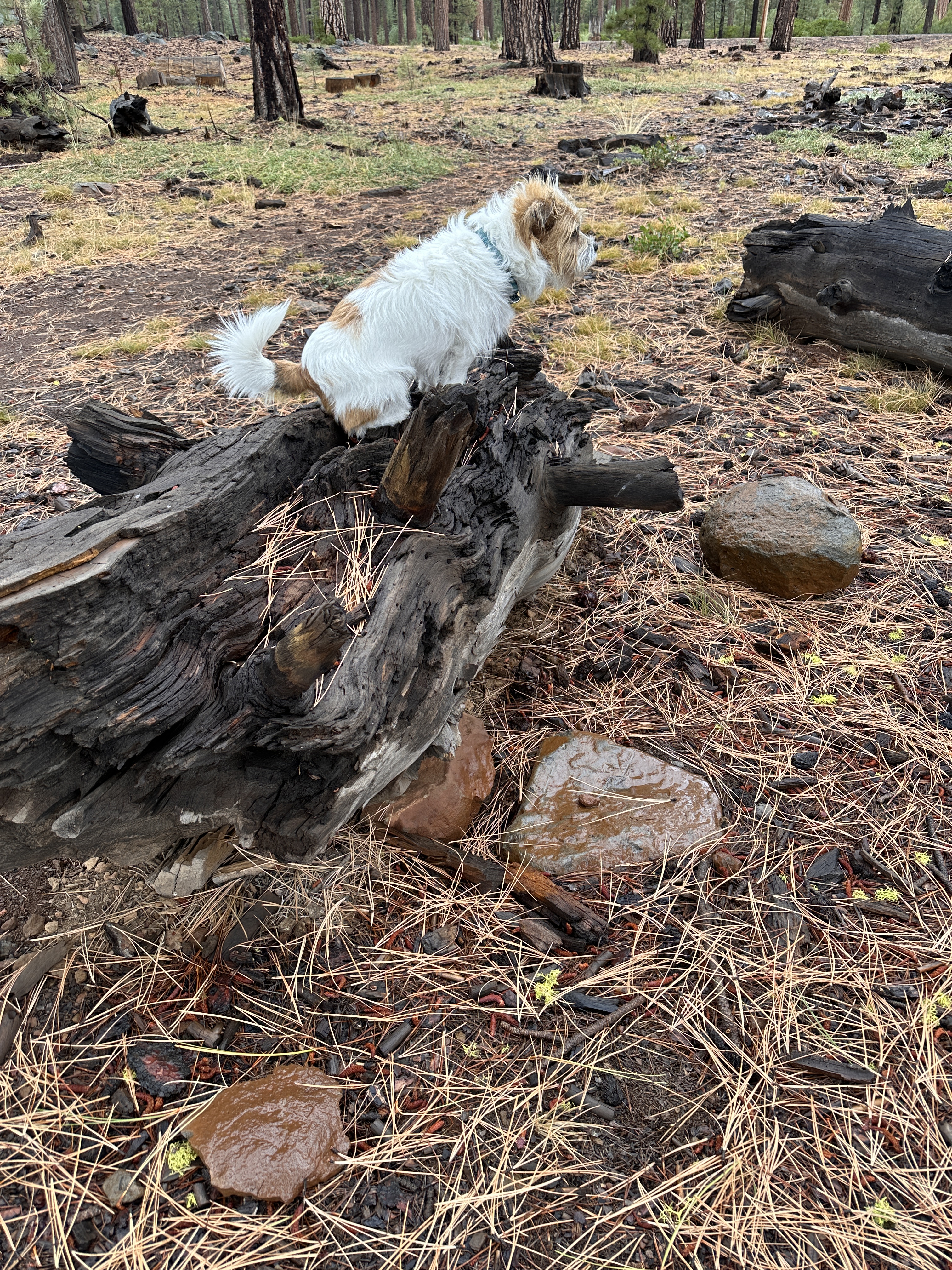 Once on solid ground, I proceeded to break camp. The only thing remaining by then was the power cord. Max didn’t care. He just wanted to leave. But first, he had to wander a bit and visit all the puddles caused by the overnight rain.