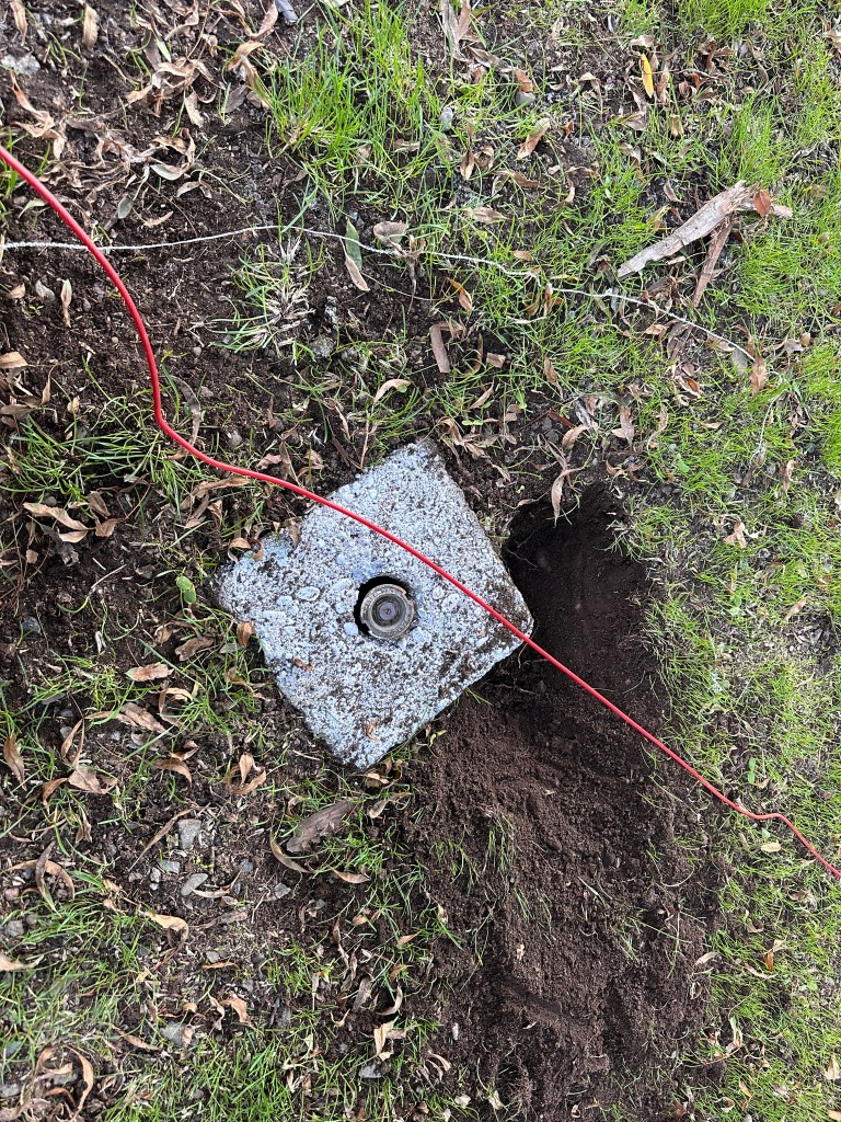 I didn’t take any photos today but have to share a couple from yesterday evening. The park we’re in has in ground sprinklers all over the place which is new in our experience. Apparently they do a nice job because all the available grass looks really nice. While sitting next to the RV, enjoying the evening, and Max apparently decided he needed to see what the sprinklers were all about.