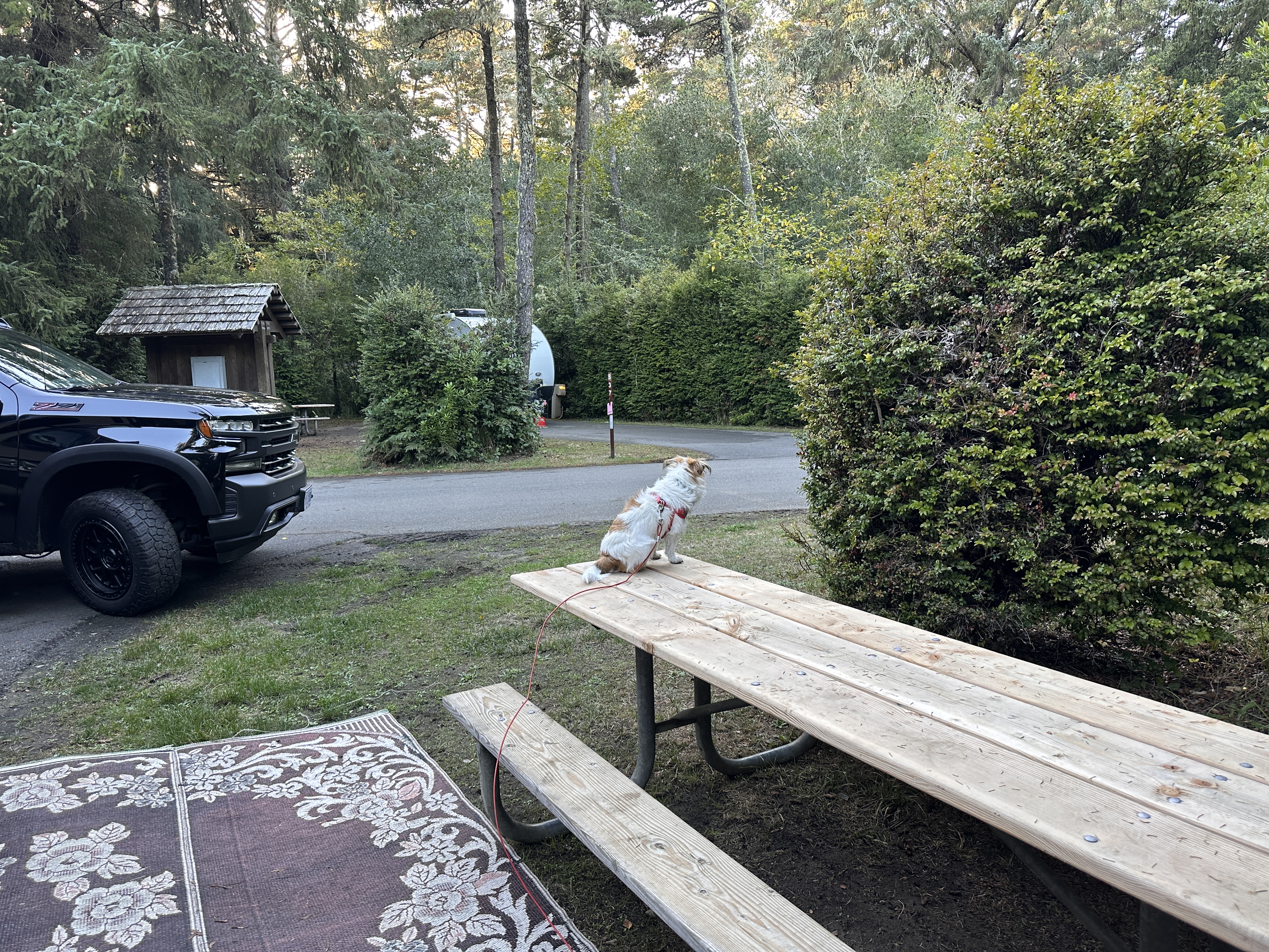 We spent Monday night in Armitage Park near Eugene. It was very peaceful there. The RV spaces are about 40-50 feet apart, in some areas, and there are lots of trees but none obscure a good view of the southern sky. So, the satellite worked great just sitting on a picnic table. Didn’t have to climb on the RV roof which is a huge win. I’m pretty certain that one of these days I’m going to tumble off the roof and break something important. That’s one reason I like spaces not cluttered with bushes and trees because it ensures I have a clear shot at the ground should I fall.