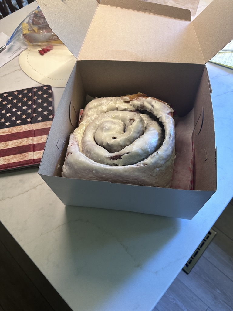 On that day we went to Kelso to the UPS store so took advantage of our location to have lunch at Stuffy’s. Because we were there on the actual day, and they made me prove it, then gave me one of their famous cinnamon rolls.