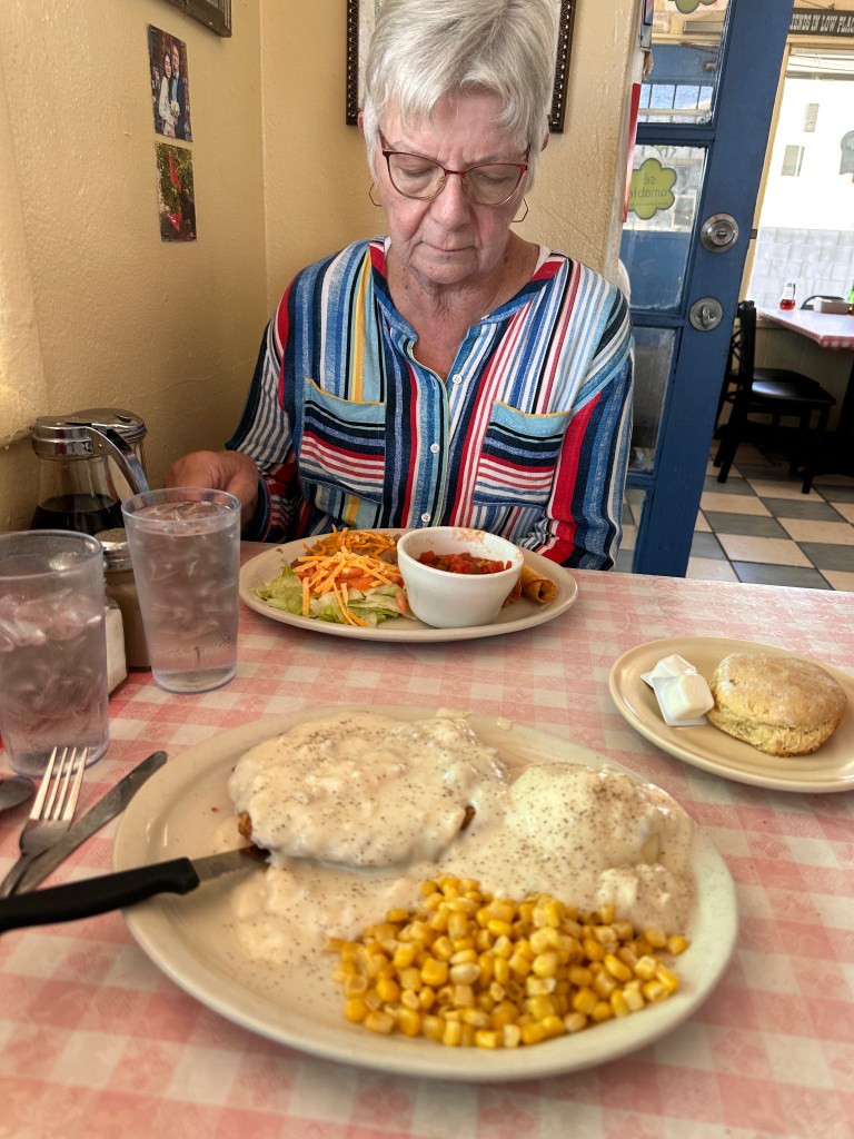 Here’s what we ate. Diane had taquitos and I had a chicken fried steak: