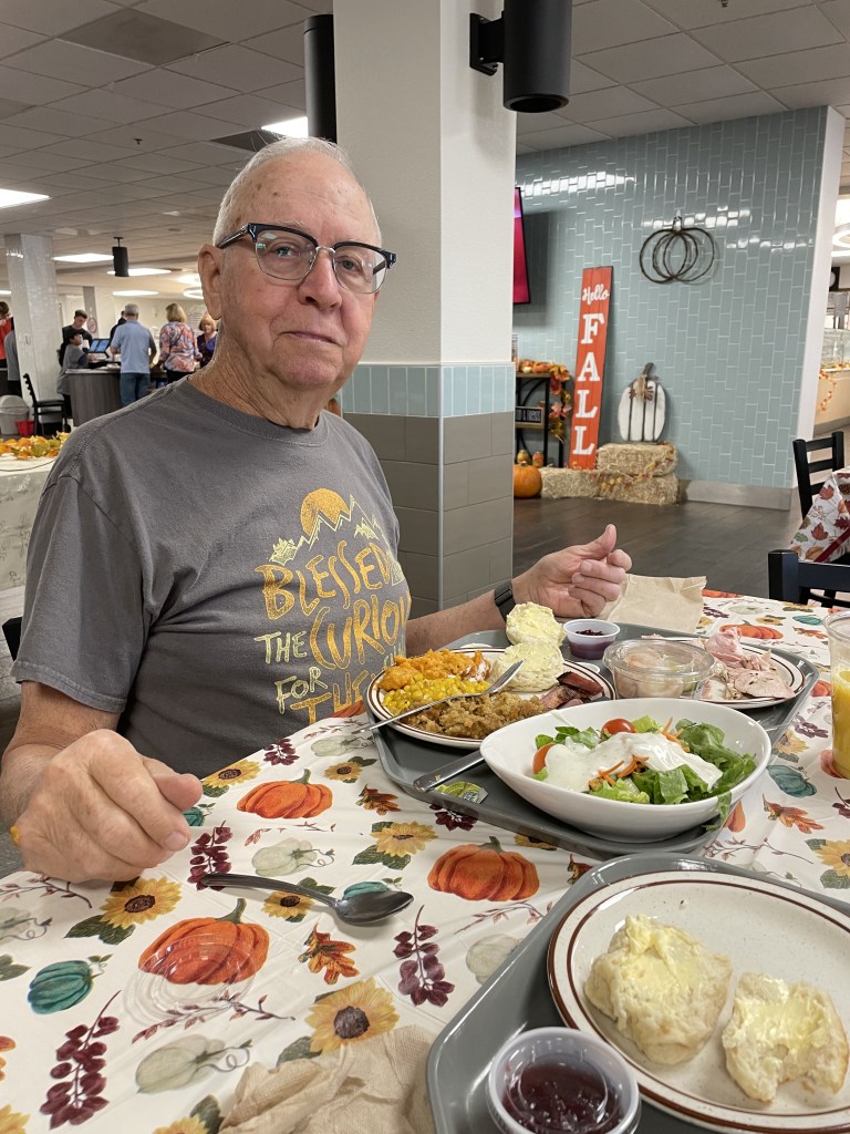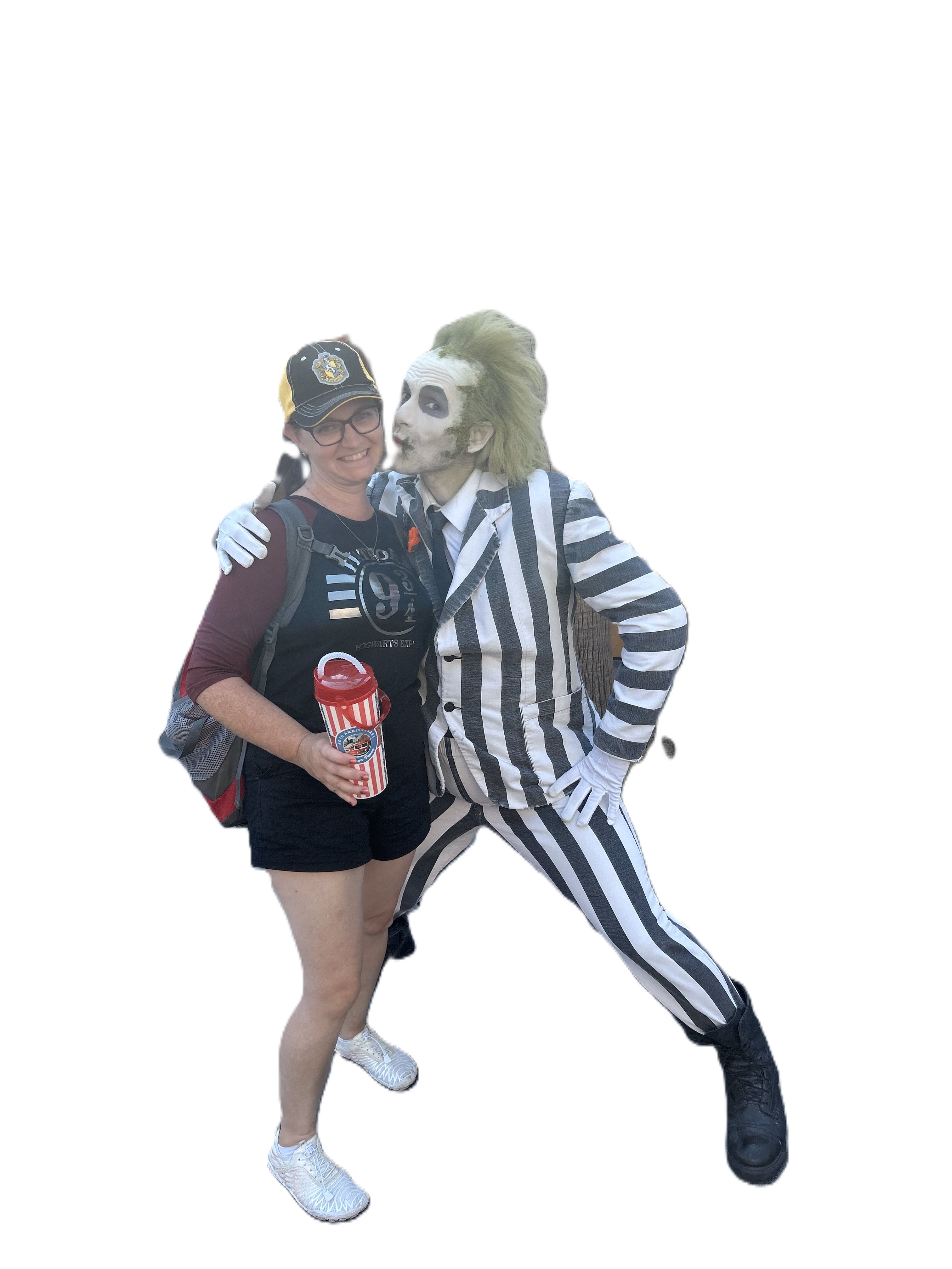 After moving through the display for a while, getting whiplash to ensure we didn’t miss something, Diane took a break next to the only dinosaur in the place. Thankfully, he was friendly.