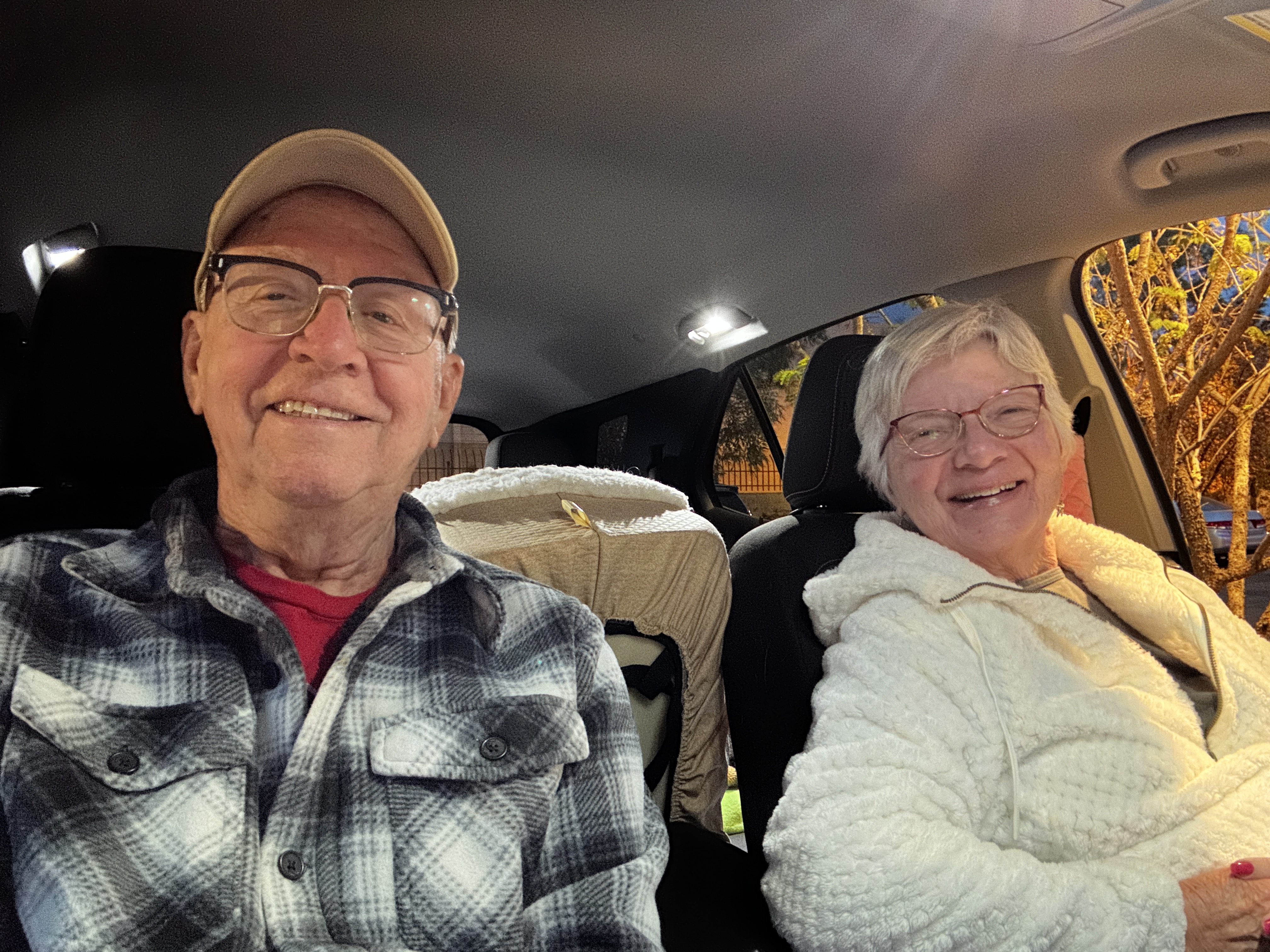 We got there early and found a parking space about 10 feet from the entrance. We were so early, that we had to wait about half an hour for the door to open so we just sat in the car and watched the people show up and create a line that went all the way around to the front of the building. When the door was opened, we got out and just blended into the line and no one objected. Everyone was in good spirits. This is us waiting.