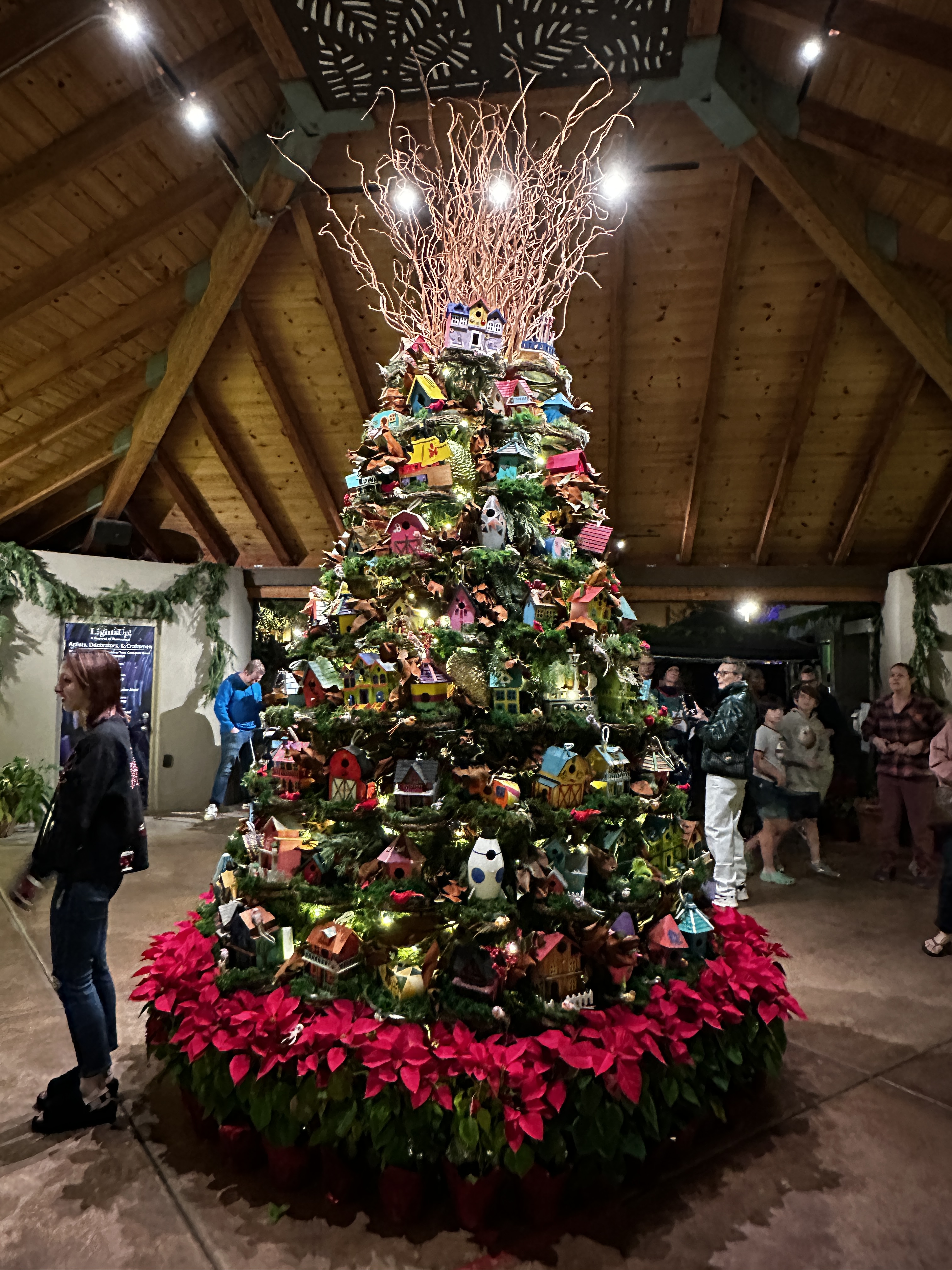 After showing our tickets, which were on my phone, the first thing we encountered was a Christmas tree decorated with bird houses.