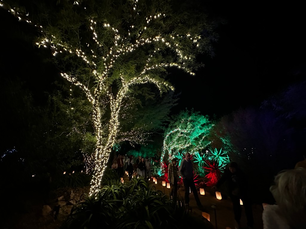 Today we visited a couple of Max’s favorite thrift stores to kill time until about 1700. That’s when we had to put our warm clothes on so we could go see the light show at the Tucson Botanical Gardens. This event is something that runs from today through January 12th. Diane planned our trip through the gardens so we could be in the first group to see the splendor.