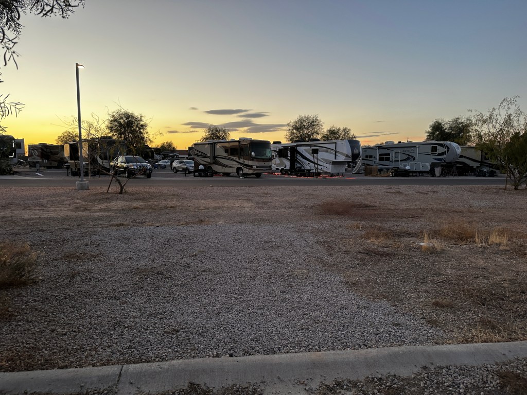 We made it to Luke AFB, and through the South Gate, just about quitting time the barriers in the road popped up stopping all traffic in and out the gate. No one seemed to know why, and it took about 30 minutes for someone to figure out how to make the barriers go away. By then, pretty much everyone on base trying to get home after a long day at the office was lined up for miles in multiple directions. Thankfully, we were apparently the last two vehicles that made it through the gate going on the base. The incoming line outside the base must have been just as bad as the lines waiting to get out.