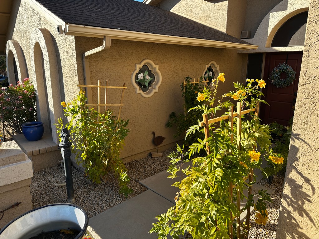 This morning, Diane went to the commissary, which is literally right next to the Fam Camp we’re in, so it was a short trip. While she was gone, I took Max for a long walk because he was assigned guard duty for the bus while we went to visit Julie & David in Peoria. Julie is Diane’s cousin, and she grew up in Warren, Oregon, just like Diane did. Kinda handy, right?