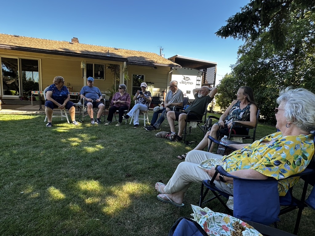 Our Winnebago friends showed up out of the blue and hooked up for a 3-day visit. These visits are limited to 3 rigs because that uses all the space in front of the house. Another limiting factor is power. With this many rigs plugged into the garage circuits there’s no doubt a breaker will eventually trip. But, it all works out with a great visit.