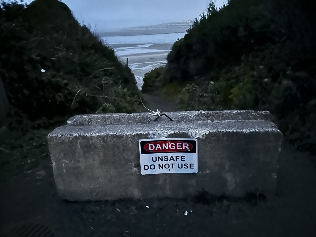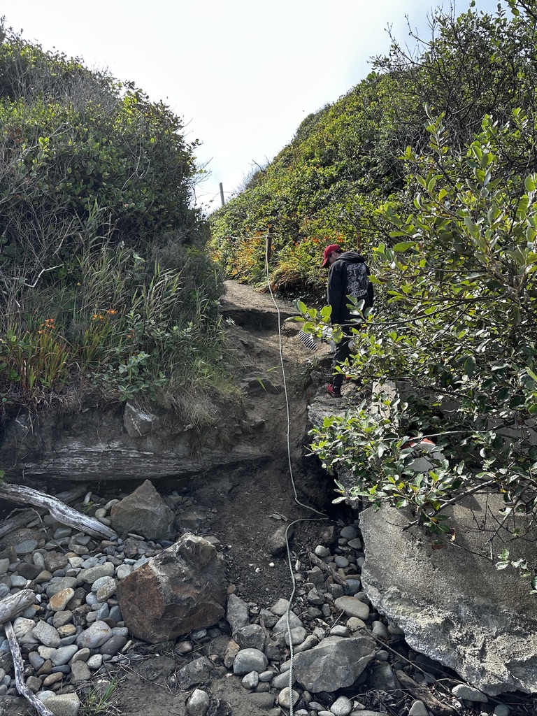 The big kids kicked around the neighborhood and found a path to the beach pretty close to the house. The rope tied to the block goes all the way down. Wearing gloves is recommended but I wasn’t going back for them.