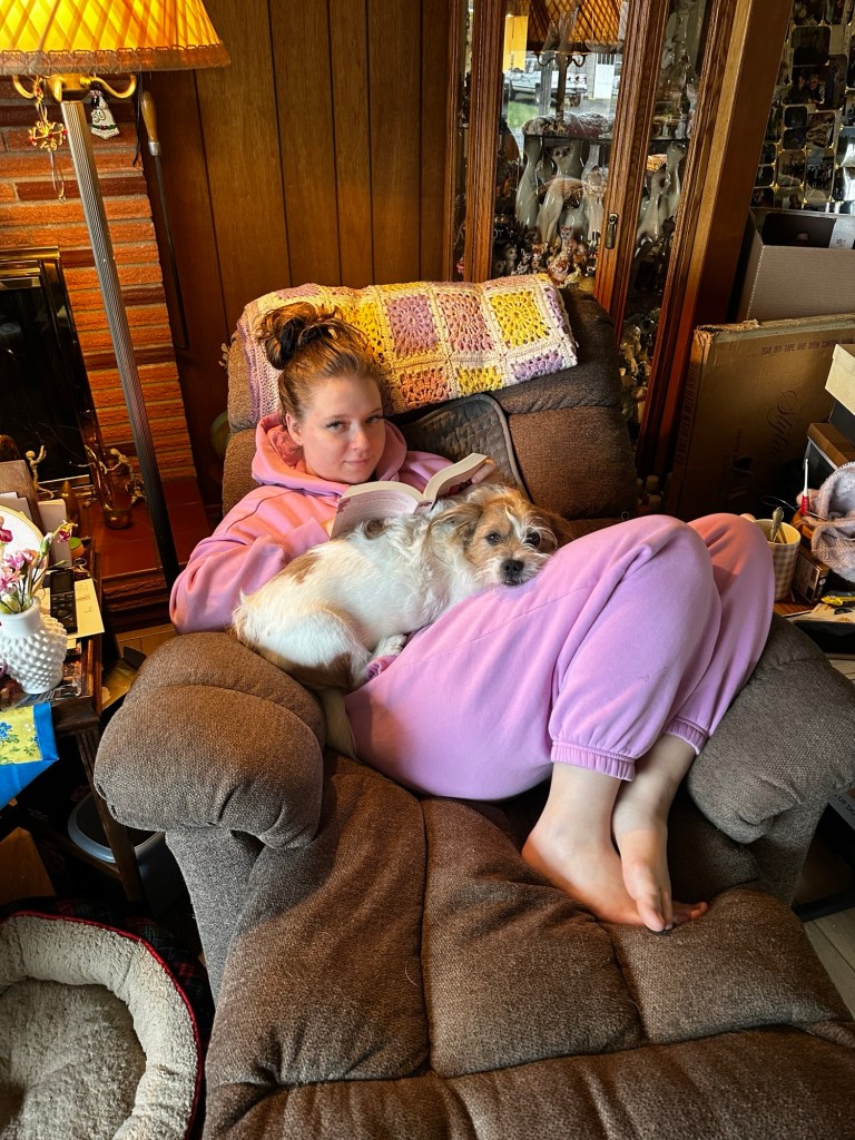 This is where he likes to hang out when Lydia is home. He’s her book rest. When she’s eating, he sits on the leg rest and stares at her the entire time she eats. He never gets any of it, but he’s watching, just in case.