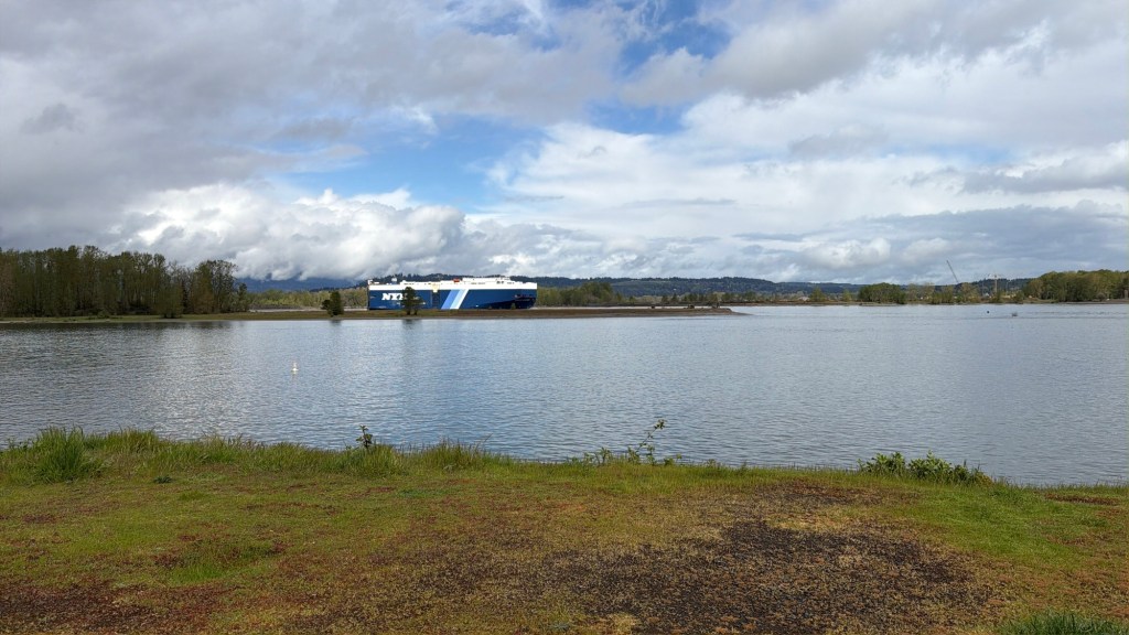The picture above is a car carrier on its way to Portland. It was riding very high in the water which told me it was empty. I earlier heard that there was a recall on a bunch of cars that were delivered just a few weeks ago so I suspect this ship is going to pick them up. Then it’s going to return them to the factory where the defaults to will be corrected. Seems to me that it would be easier to just fix them where they are instead of sending them all the way back to Japan, or wherever they came from, right? Could have something to do with tariffs. Who knows?