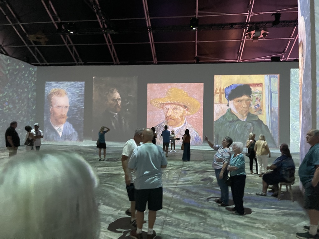 The swirling display changed constantly for 37 minutes so it was difficult to keep our eyes moving in such a manner that allowed us to see everything. There was some danger that we’d have to sit through the display again to ensure we didn’t miss anything. You may have noticed that Vincent painted numerous pictures of himself. That because, as a struggling artist, he couldn’t afford to pay models to sit for him. So, he painted what was available to him.