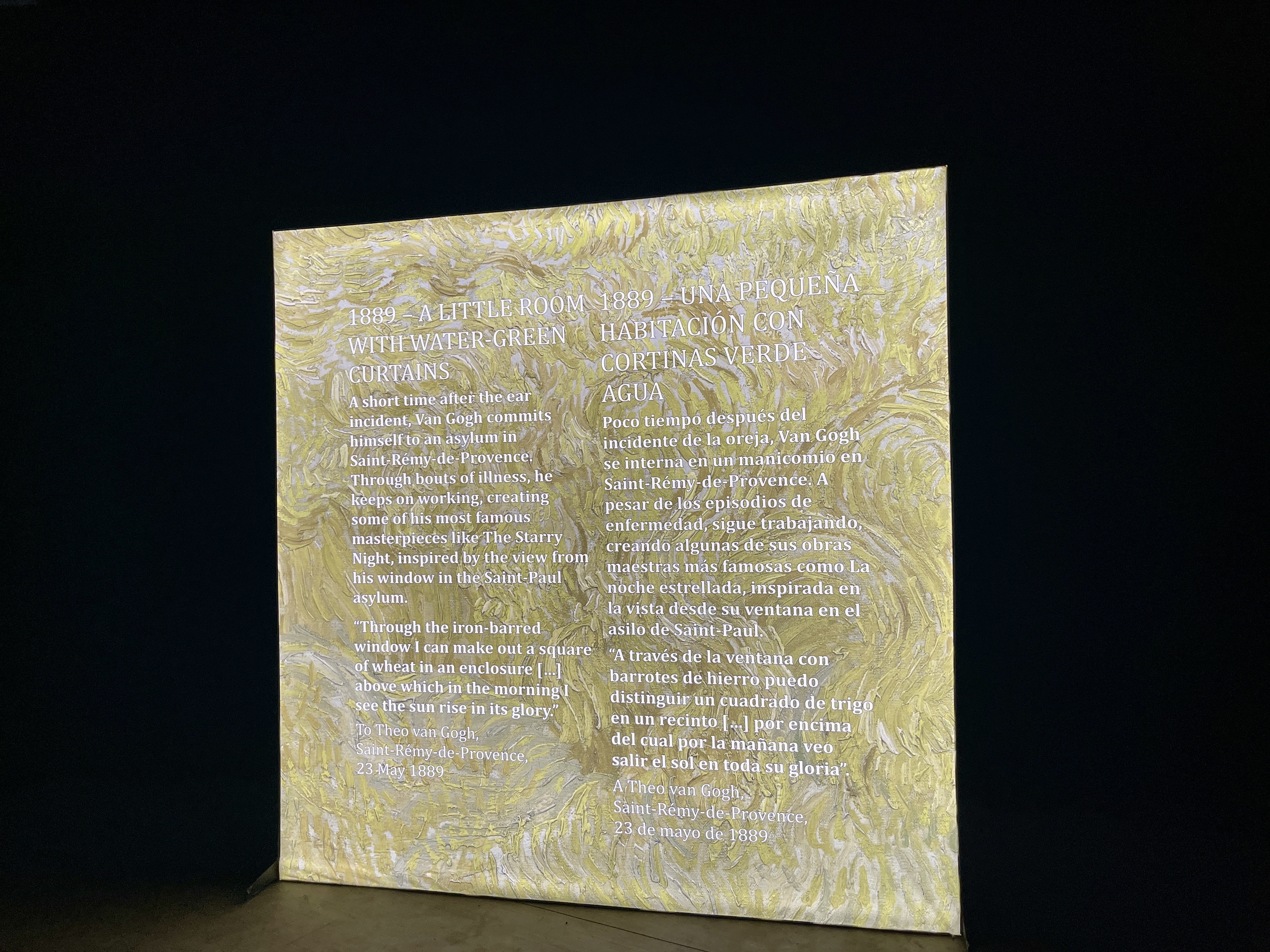 Seeing all these works by Van Gogh was mesmerizing and very calming as soothing music was played for the duration of the show. Starry Starry Nite, played in a subtle minor key by a bunch of stringed instruments, was prominent, but you had to listen hard to catch the melody.
