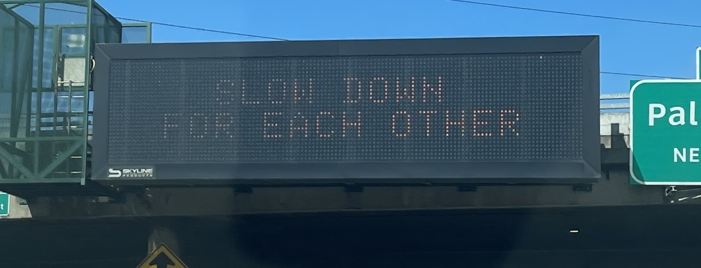 Here’s a fun sign we’ve seen a few times while traveling the freeways.