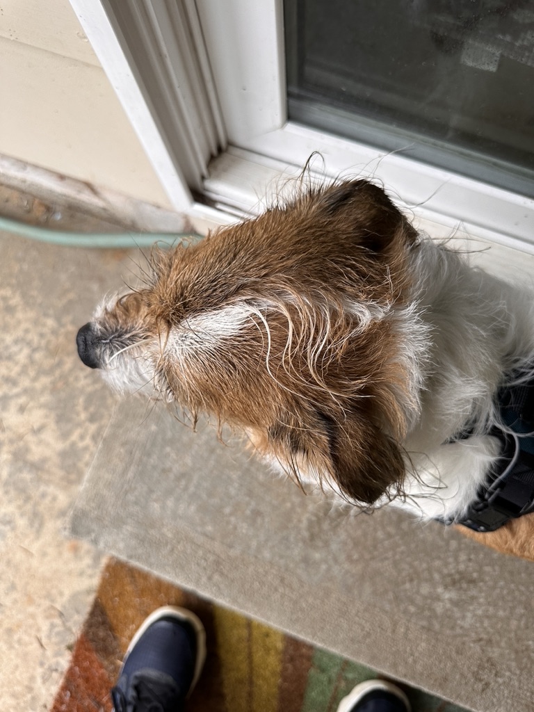 It might be a good idea to get him one that serves as a life jacket, too, because the creek out back is getting pretty high, almost to the point of overflowing into the yard. Keeping Max dry is our problem, not Max’s. He likes the water and doesn’t care how high it gets.