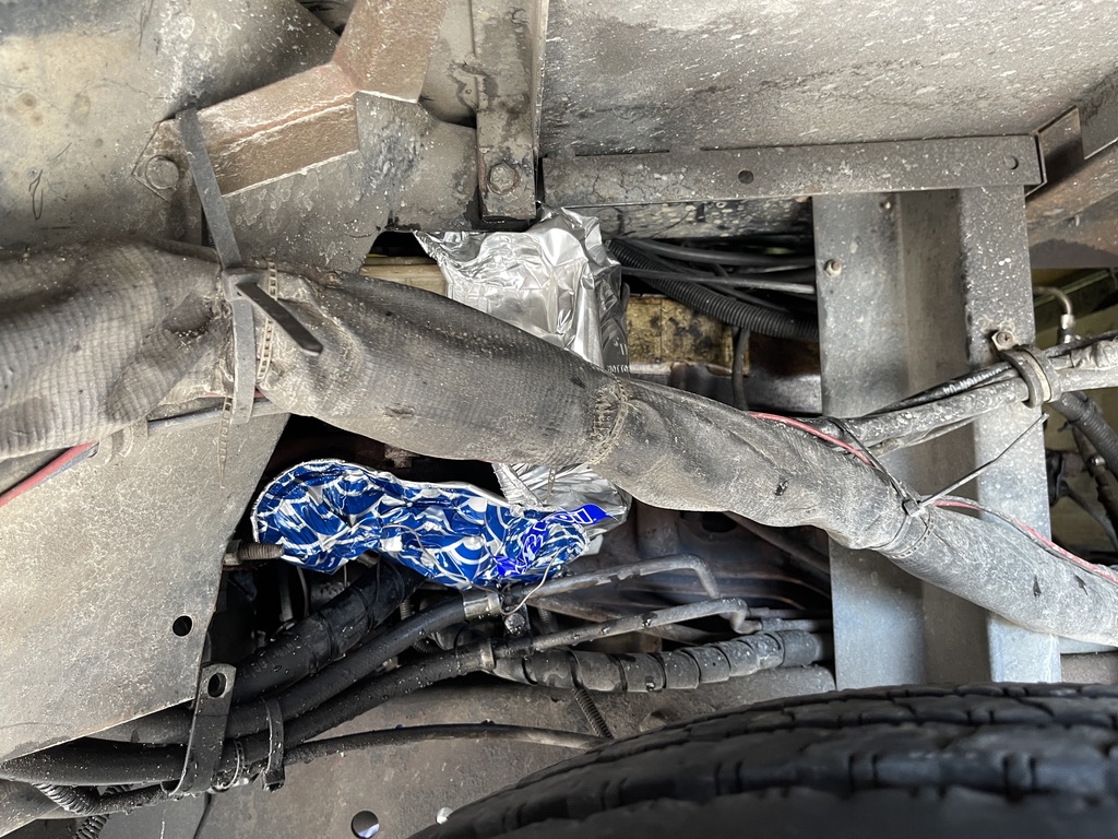 The problem was solved by puling to the side of Highway 93 and letting everything cool off for a while. Hence, the added time for the trip. The master brake cylinder is physically located about 6-8 inches from the exhaust manifold causing the brake fluid to boil and lose it’s compression properties. Wrapping the master cylinder with a moldable aluminum baking pan added the additional protection that got us safely to our destination. It should serve us well for the remainder of the trip, also.