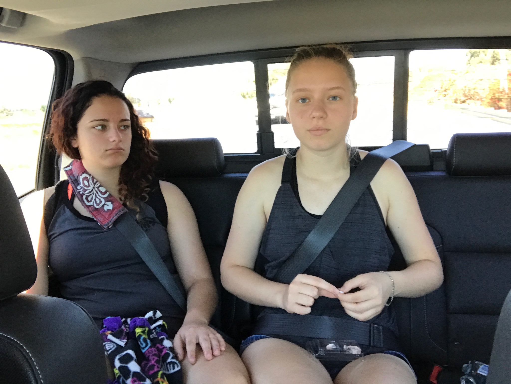 One of the HUGE things I failed to mention is the weather. We’re having some, and it’s really hot. Apparently we timed this trip just right so we could experience the hottest temperatures southern California has ever seen. The thermometer in the truck registered between 95 and 100 all day yesterday and weather alerts kept showing up reporting severe heat ahead. Nifty. Last night, when I took the girls to the Jet Mart, it was still 91 out there. We checked the weather at home and learned it was 60 and raining there.