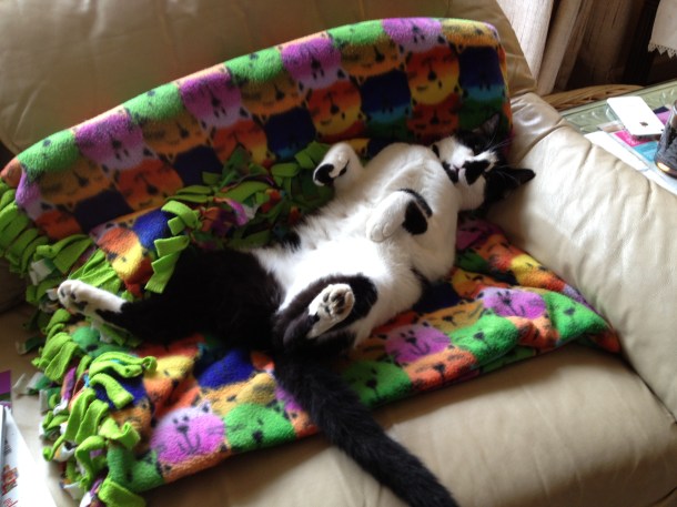 Once I’d had my share of the floor yogurt, I called Ozzie over to see if he liked Peach yogurt. He did for a short time, but quickly gave it up so Panzee could finish up. Panzee likes any kind of yogurt. She’s my official yogurt container cleaner, getting the remnants my spoon can’t. When she was finished with the floor, she stared intently at me, waiting for the container to finish the job. I ate slowly, causing her great concern, but she kept her cool, and didn’t issue any threats that would cause me to hasten the process.