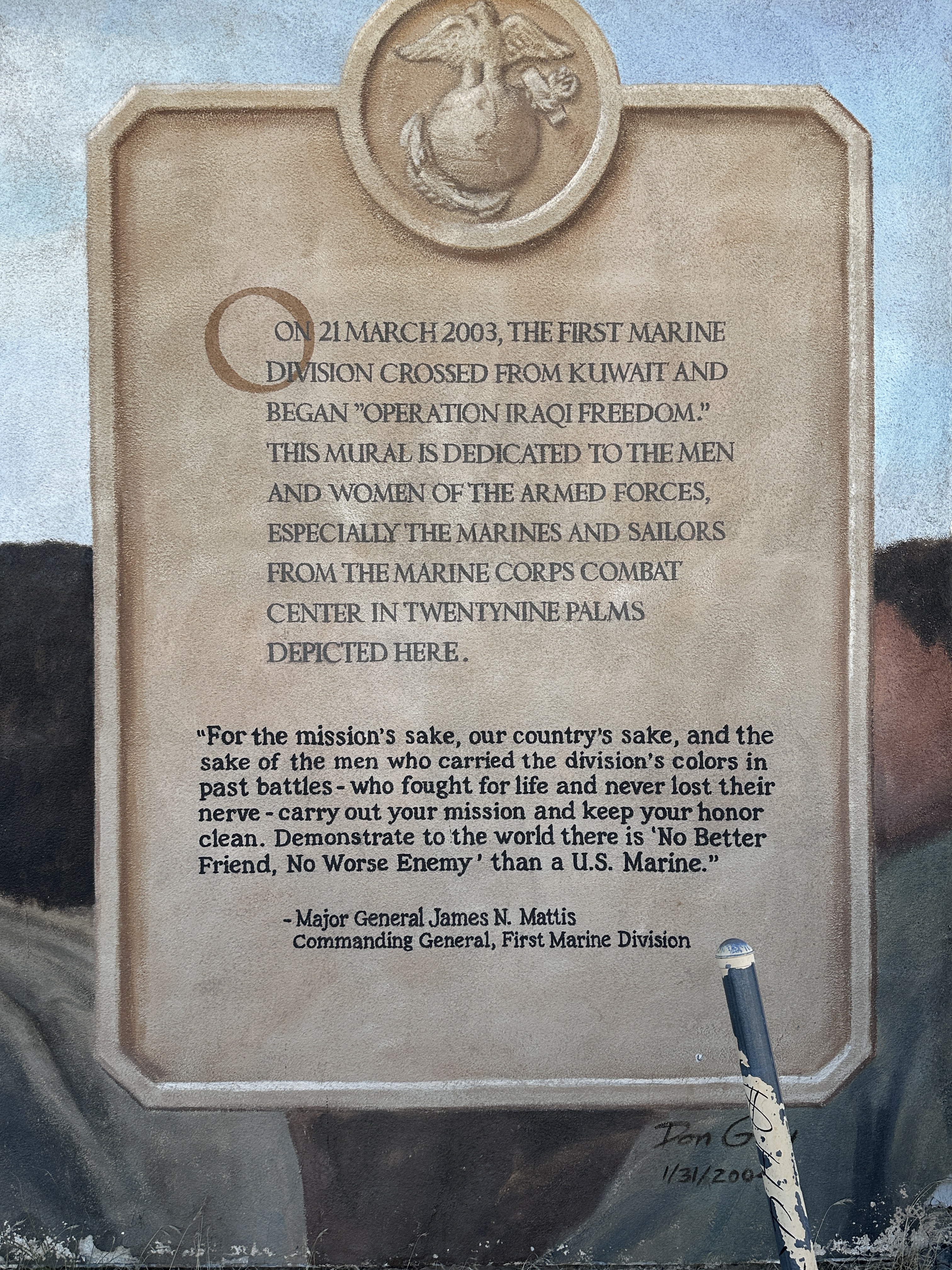 I’ve been enlightened. Until recently, like two days ago, I plodded down a path where I believed that the base we are currently living on is a Marine Corps Air Station. I believed that in spite of the signage displayed at the base entrance was specifically Not MCAS but is MAGTFTC/MCAGCC. Digging a little deeper revealed that this base is the largest marine corps base in the world. Although I cannot find any information that this was, at one time, a MCAS, I will probably go to my grave believing I’m right.