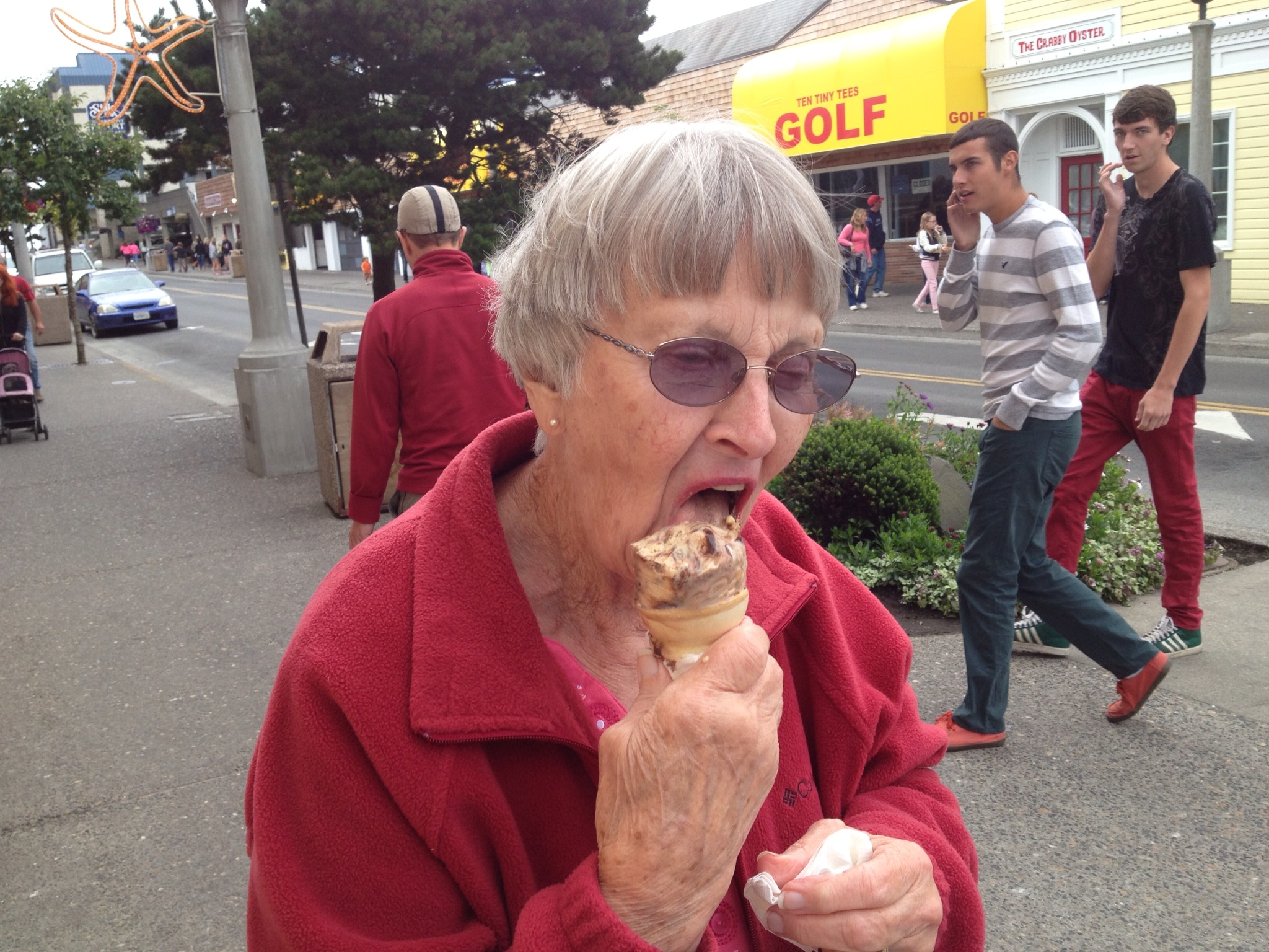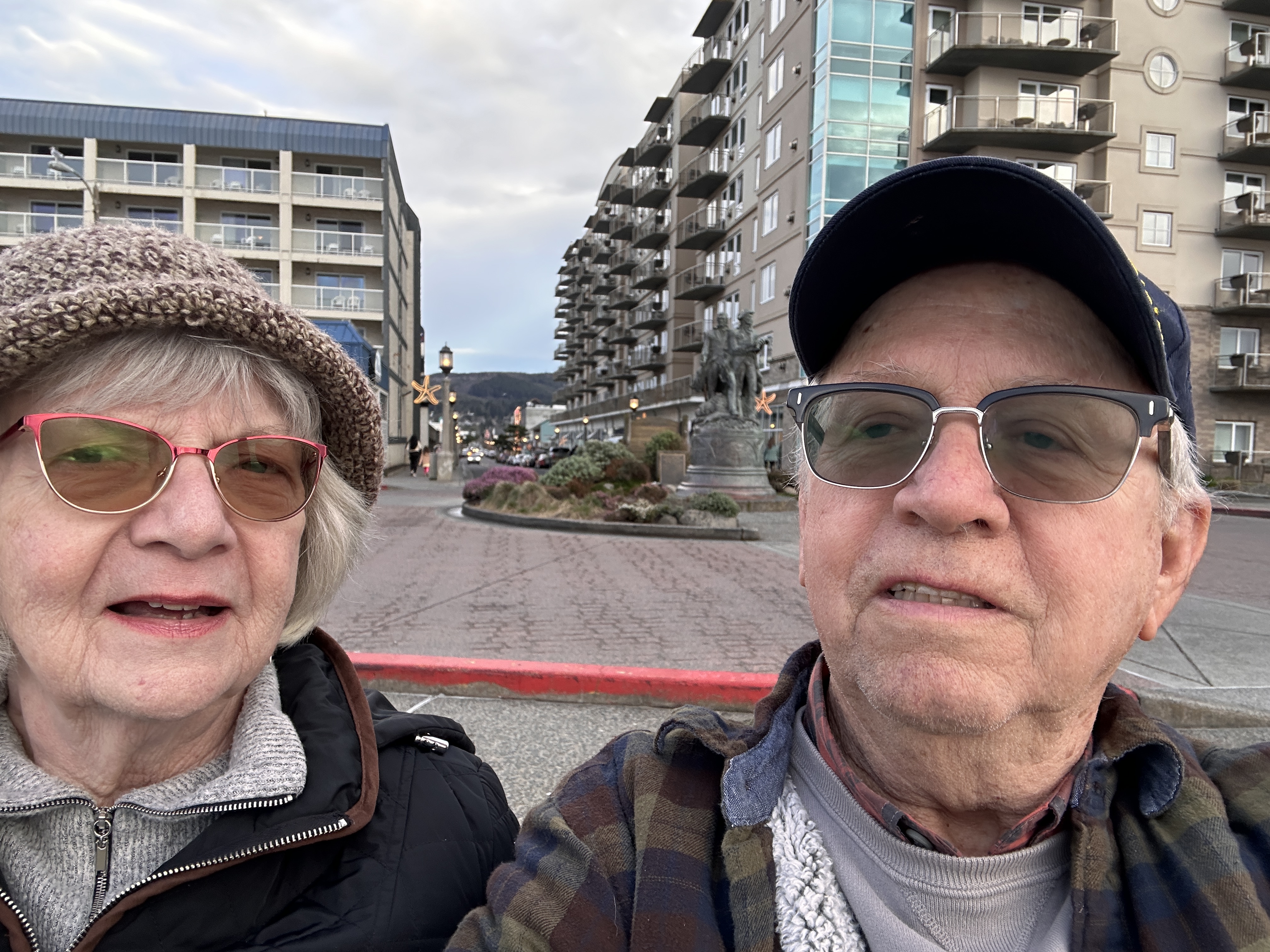 We took one long walk, about 2 miles to Norma’s and back just to get this required photo of us at the Seaside Turnaround.