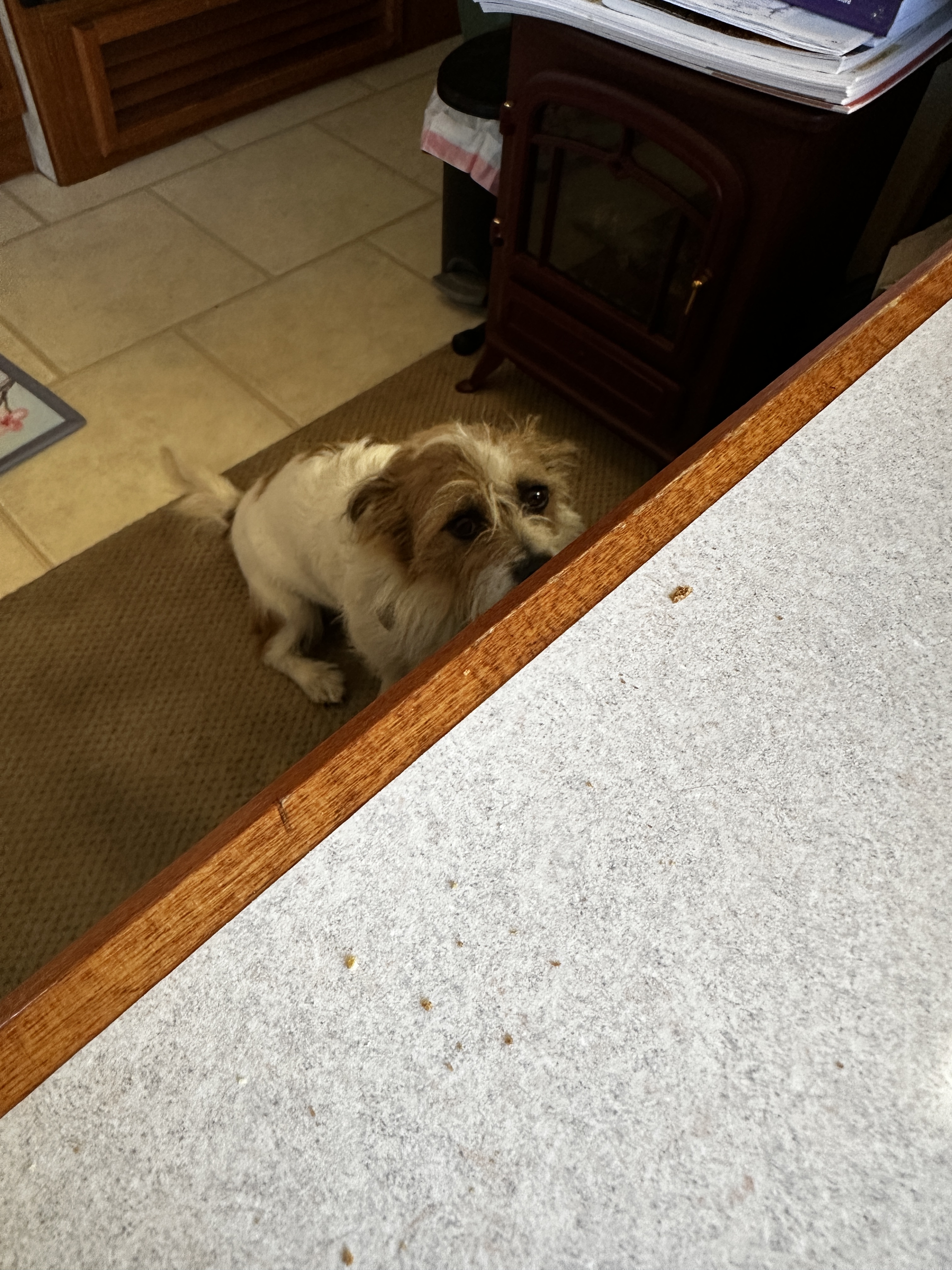 For lunch I whipped up a 7-egg omelet, which was pretty good. Even Max kept his eye on our forks in case something fell off.