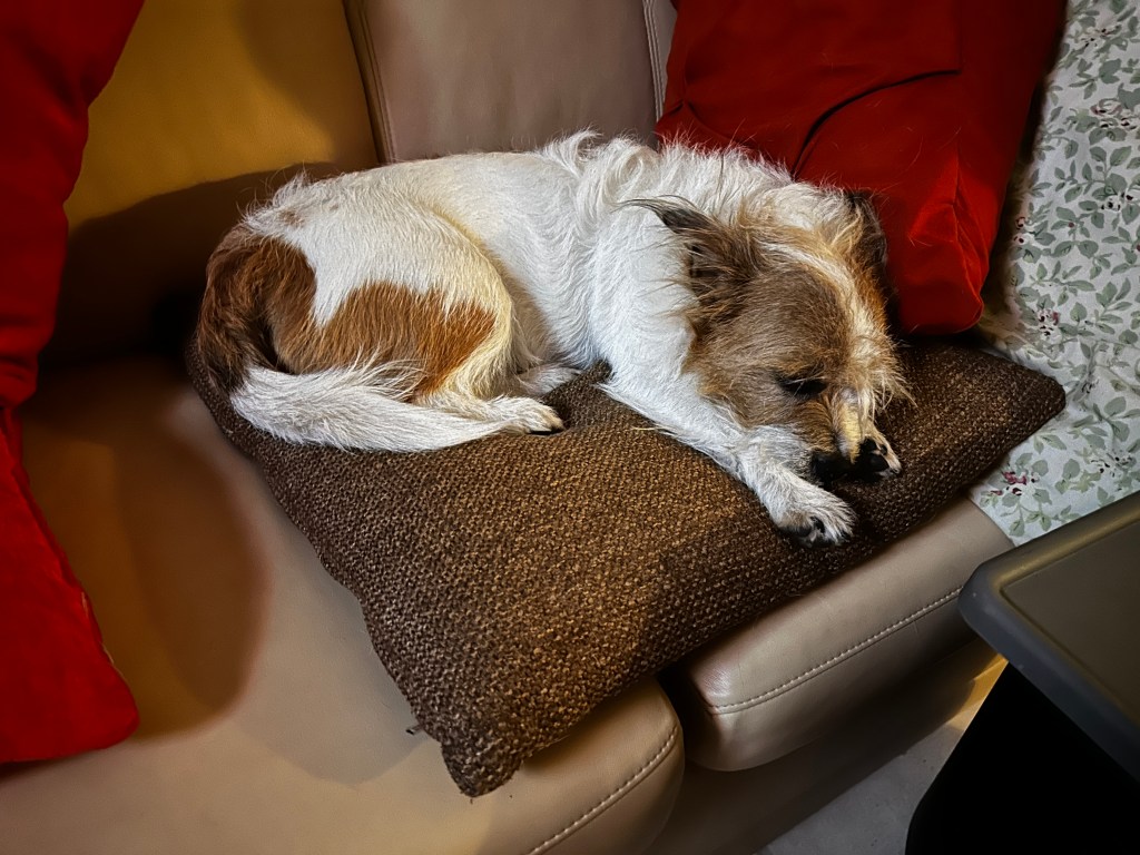 So far today I once again resurrected the bus’s furnace by resetting it. Doesn’t seem like I should have to do that every time, but I don’t mind as long as it keeps working. The inner temp was around 49 degrees when I got up at 0430 which I viewed as a good reason to go back to bed. Little Max weathers the cold temps nicely and I don’t know how. I guess it’s all that hair he hasn’t shared with us yet.