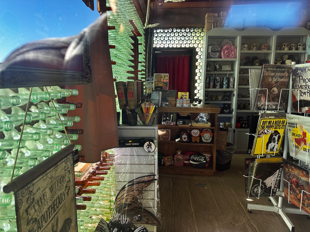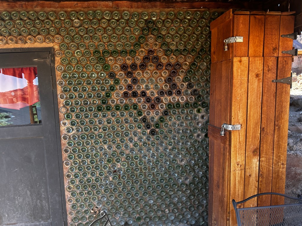 The structure where Diane rested was build of cement and bottles. Sadly, it wasn’t open for viewing, but I got a few photos of the interior through one of the windows.