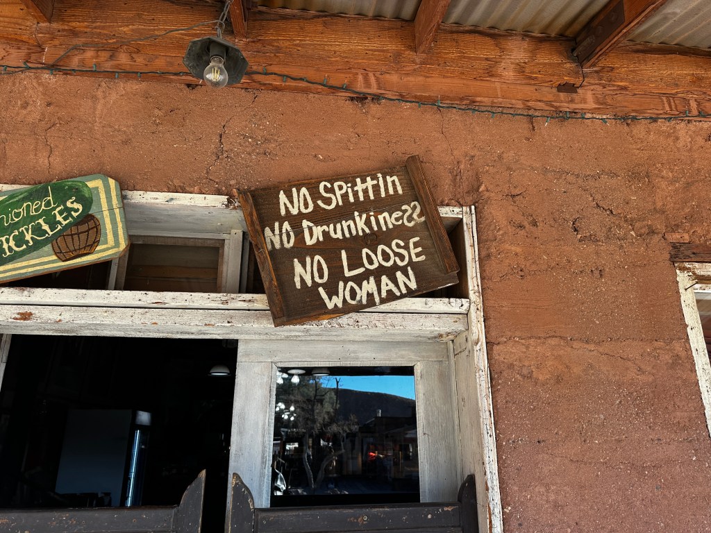 There’s quite a bit of up and down elements to the ghost town so we took breaks often. Thankfully, there were lots of benches and chairs scattered around the town. From this one I took a hike to the top of the town where that teeny sign is in the distance.