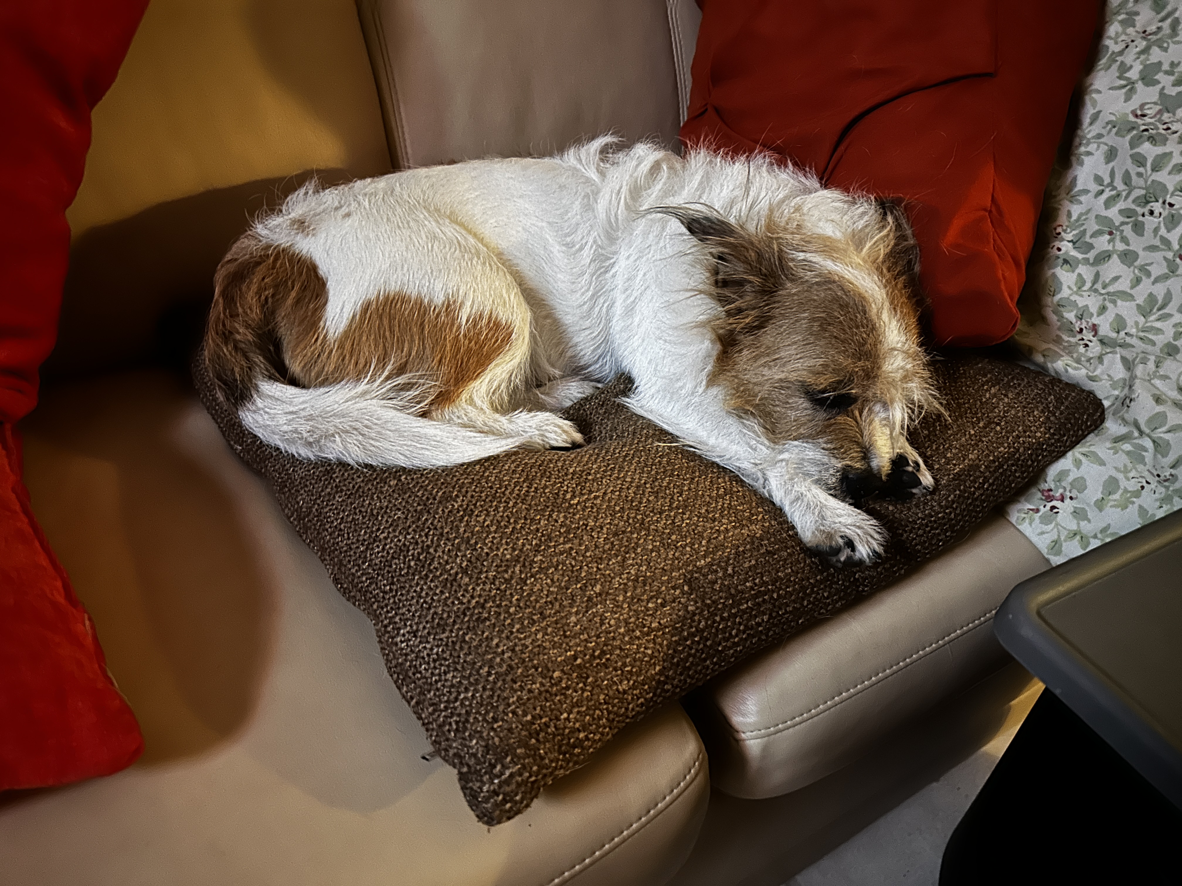 So far today I once again resurrected the bus’s furnace by resetting it. Doesn’t seem like I should have to do that every time, but I don’t mind as long as it keeps working. The inner temp was around 49 degrees when I got up at 0430 which I viewed as a good reason to go back to bed. Little Max weathers the cold temps nicely and I don’t know how. I guess it’s all that hair he hasn’t shared with us yet.