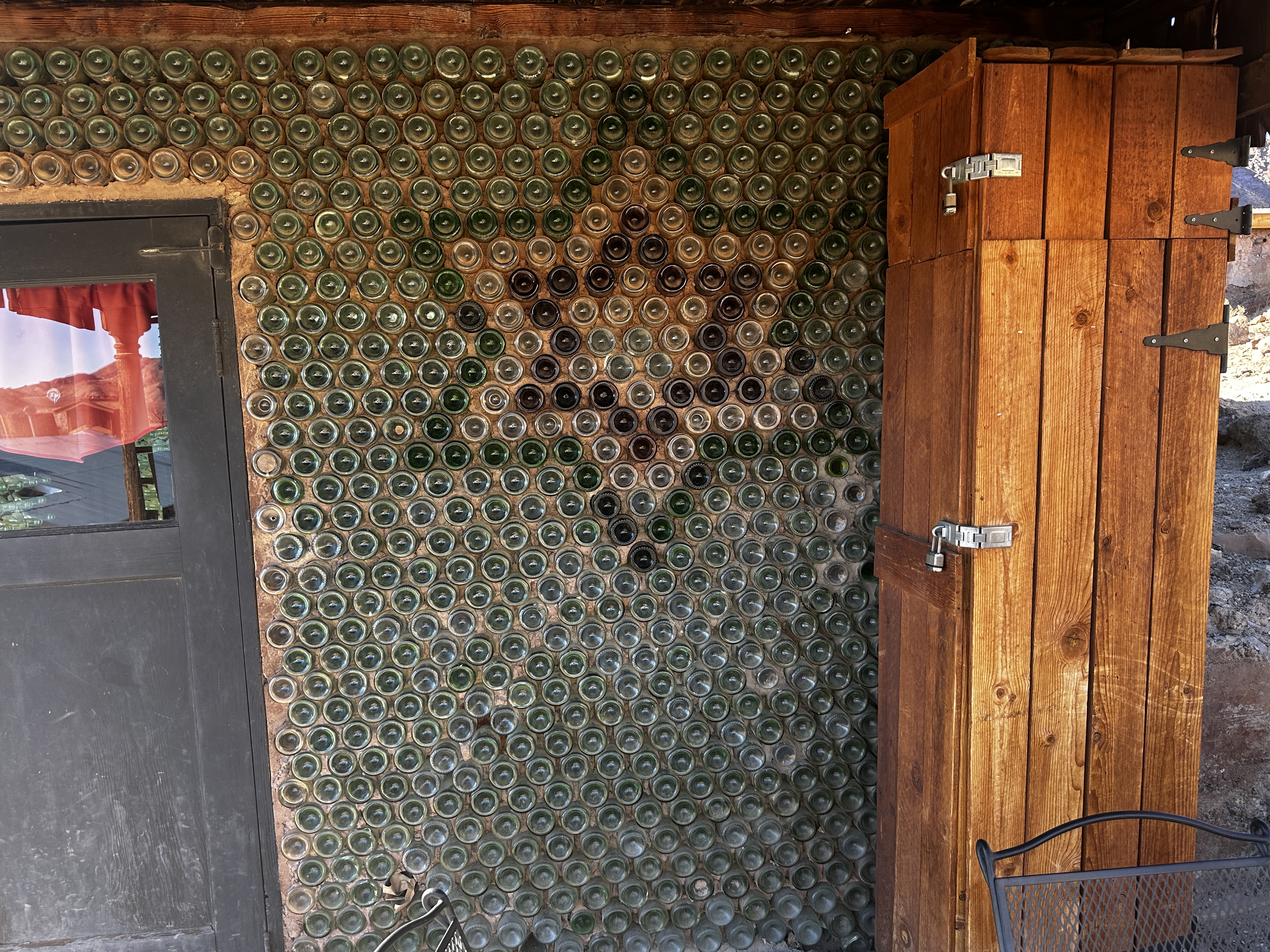 The structure where Diane rested was build of cement and bottles. Sadly, it wasn’t open for viewing, but I got a few photos of the interior through one of the windows.