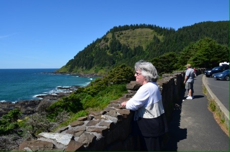 Finally we were released to enter our vehicle. We had Ruth’s Toyota Highlander, and we were vehicle number one. A Funeral Traffic Director lined up the vehicles in two rows at the parking lot exit and urged us to wait for the hearse to pass before we took off. We did, and the hearse, preceded by a van with a nifty blinking blue light on top, finally went around us and the procession was started. Larry was driving with Ruth up front, Valerie and me in the back.Valerie is Larry’s wife.